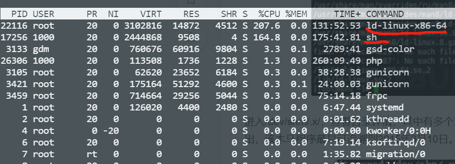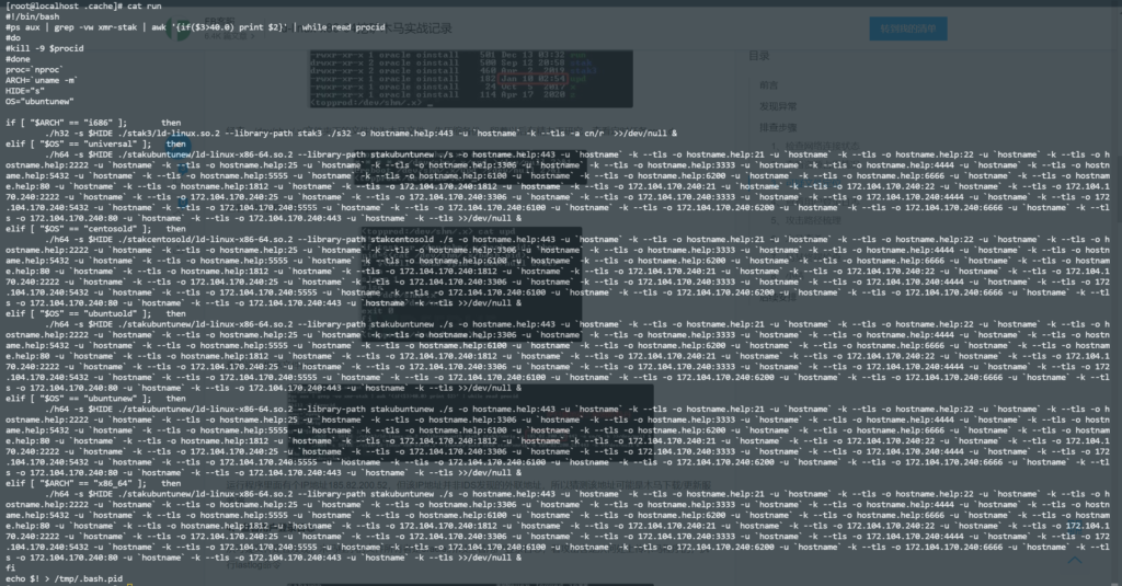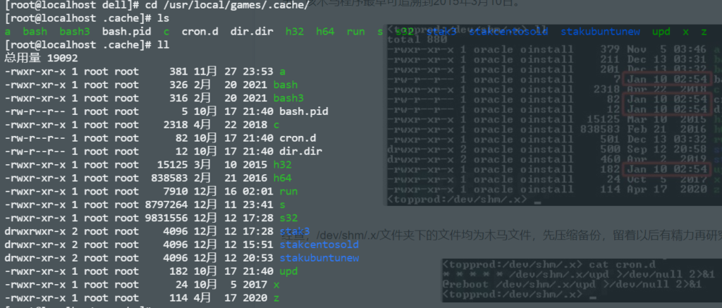 可以用find找到,就是/usr/local/games/.cache/下面的文件了,进去看看,这里查了个资料ld-linux-x86-64挖矿木马实战记录。